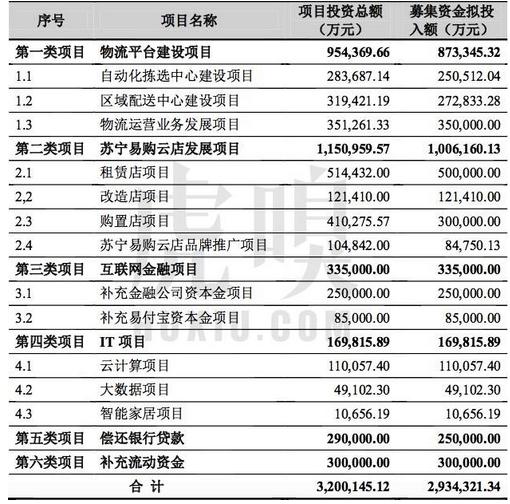 蘇寧定增募集的293.4億(含阿里283億投資)主要用于蘇寧易購IT、物流、金融等基礎(chǔ)設(shè)施建設(shè),于實(shí)際預(yù)算320億還相差26.6億,這并不是什么問題,蘇寧2015年末手頭持有現(xiàn)金及現(xiàn)金等價(jià)物約168.2億,完全有能力補(bǔ)齊項(xiàng)目款。