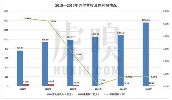 回顧蘇寧近六年的創(chuàng)收及盈利能力,如圖: