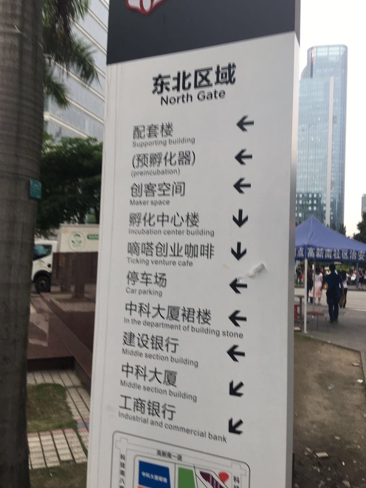 這些看起來沒什么錯(cuò)誤,是吧,但其實(shí)他們都很搞笑(funny)。這里,工商銀行,如果他們寫ICBC,可能更好一點(diǎn)。中科大廈,Middle section building,也非常奇怪。