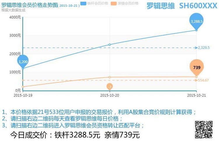 于是“會(huì)員資格”成為一項(xiàng)可交易的標(biāo)的物。那之后的幾天,羅輯思維會(huì)員資格買賣交易在許多羅友的微信群里如火如荼,最貴的時(shí)候一個(gè)會(huì)員資格的價(jià)格被炒到了6位數(shù)。甚至還有人每天統(tǒng)計(jì)普通會(huì)員和鐵桿會(huì)員的價(jià)格波動(dòng),制作K線圖。
