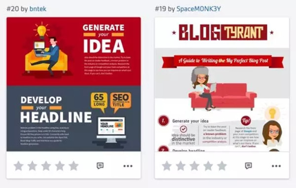 我在99designs上發(fā)布了一個(gè)信息圖招標(biāo),只需發(fā)布一個(gè)項(xiàng)目,并把要求寫(xiě)出來(lái),就會(huì)有很多藝術(shù)家為你創(chuàng)作圖形、標(biāo)志或圖片,你只需選擇最滿意的一個(gè)就可以了。