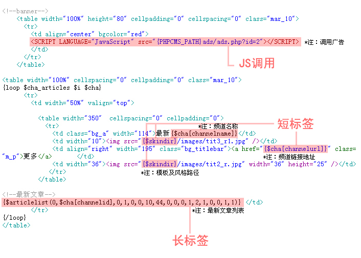 phpcms系統(tǒng)提供了兩種標(biāo)簽(短標(biāo)簽、長標(biāo)簽)調(diào)用和JS調(diào)用共三種方式以滿足不同情況下的需求,下面是如何使用的例子