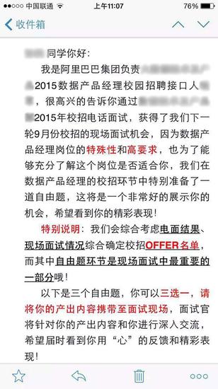阿里巴巴對(duì)像張穎這樣中止面試的求職者都是電話道歉并且會(huì)為他們一份禮物。