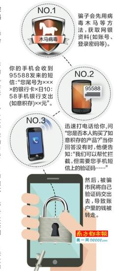 近期,包括廣州在內(nèi)的全國(guó)多處地方均出現(xiàn)一種名叫“如意金騙局”的新型詐騙。南都記者從由被騙市民組成的Q Q群獲悉,在這種新的騙局里,騙子不僅掌握了你的個(gè)人信息,還會(huì)輕松侵入你的網(wǎng)銀,在你不知情的前提下“幫”你購(gòu)買銀行理財(cái)產(chǎn)品,然后憑借取款的個(gè)人信息,以退款為由贏得你的信任,騙取你的手機(jī)驗(yàn)證碼,最后將賬戶中的錢卷走。南都記者獲悉,目前,工商銀行廣東省分行已下發(fā)風(fēng)險(xiǎn)提示,要求各網(wǎng)點(diǎn)張貼防騙公告。