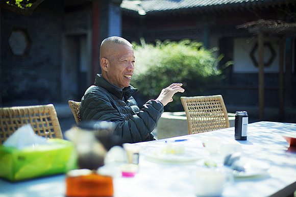 蔡國強(qiáng)在北京的家是胡同里的一座四合院,東面的院門邊種著一隴竹子,蔡國強(qiáng)工作室的成員在北房辦公,院子中央是一張白色長桌。
