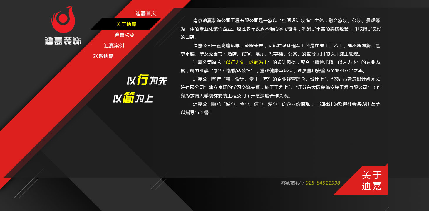 南京迪嘉裝飾工程有限公司是一家專注設計效果和施工質(zhì)量的專業(yè)化裝飾企業(yè)。經(jīng)過多年孜孜不倦的學習奮斗,積累了豐富的實踐經(jīng)驗,并取得了良好的口碑。